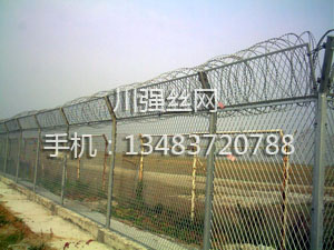 監(jiān)獄護(hù)欄網(wǎng)又稱監(jiān)獄隔離柵,監(jiān)獄防護(hù)網(wǎng),監(jiān)獄鋼網(wǎng)墻,防攀網(wǎng)等,主要是采用高強(qiáng)度的刀片刺網(wǎng)與普通防護(hù)網(wǎng)的結(jié)合,由V型支架立拄,加強(qiáng)型焊接片網(wǎng),安全防盜連接件和刀片刺網(wǎng)組成.刀片刺網(wǎng)是一種新型防護(hù)網(wǎng),由銳利尖角鍍鋅鋼板或不銹鋼薄板做刀片,鋼絲做芯線組合而成的防護(hù)器材.